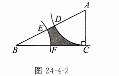 3. 如图 24 - 4 - 2,在 $ \mathrm { Rt } \triangle A B C $ 中,$ \angle A C B = 90 ^ { \circ } $,$ A B = \sqrt { 5 } $,$ B C = 2 $,以点 $ A $ 为圆心,$ A C $ 的长为半径画弧,交 $ A B $ 于点 $ D $,以点 $ B $ 为圆心,$ A C $ 的长为半径画弧,交 $ A B $ 于点 $ E $,交 $ B C $ 于点 $ F $,则图中阴影部分的面积为 (
