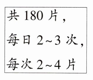 5. 新情境 图表信息 奶奶吃的一瓶药上写着如下内容。这瓶药奶奶最多吃多少天? 最少呢?