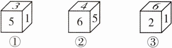 6. 新素养 空间观念 有一个正方体,每个面上分别写有数字 1、2、3、4、5、6。三个小朋友从不同的角度观察的结果如图所示。你知道这个正方体的每个数字的对面是什么数字吗?
