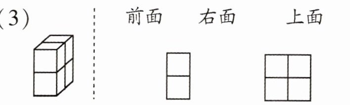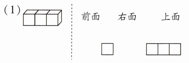 (1) 将这 4 个正方体竖着搭成一个长方体,从前面、右面和上面看,请画出看到的图形。