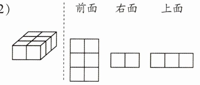 4. 用 12 个同样大的正方体摆成一个长方体。从右面看到的是