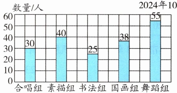 (2) 下学期合唱、素描、书法、国画、舞蹈组分别招收了75人、60人、80人、100人、60人,根据这个统计图的纵轴数据来画出条形统计图是不合适的,纵轴上1格代表多少人比较合适?