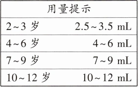 4. 新情境 图表信息 婷婷感冒咳嗽,妈妈给她买了一瓶 150 毫升的止咳糖浆,下面是每次用量的说明,婷婷今年 9 岁,这瓶止咳糖浆够她喝 5 天吗?(每日 3 次)