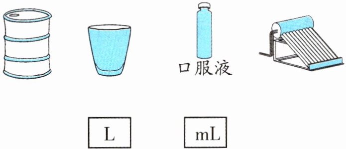1. 用什么单位计量各容器的容量比较合适?连一连。