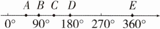 7. 新趋势知识迁移 小明将角和数轴结合起来,画了一张图,你知道图上角A、B、C、D、E分别是什么角吗?