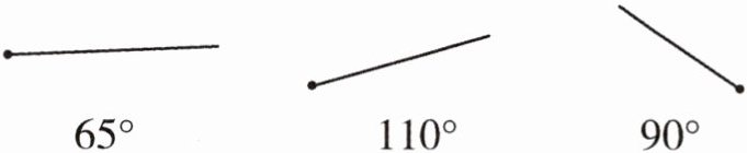 4. 以下面射线为角的一条边,用量角器分别画出65°,110°,90°的角。