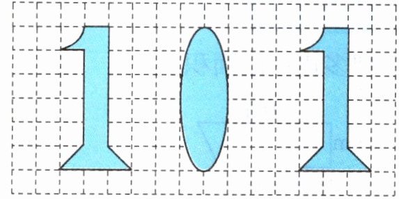 4. 每年的10月1日是国庆节,下面的网格中,每个小方格的面积是1,那么1,0,1三个数字所占的面积之和大约是(