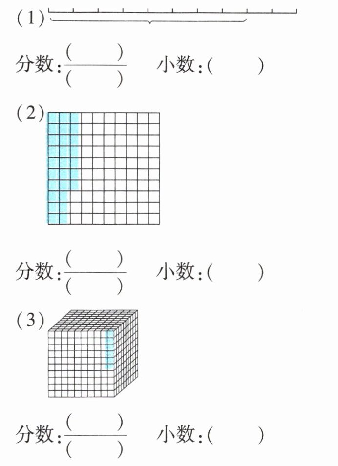 1. 看图写出分数和小数。