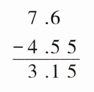 $\begin{array}{r}7.6 \\-4.55 \\\hline3.15\end{array} $