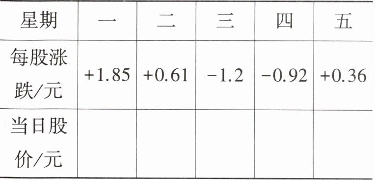 6. 新情境 社会生活 王叔叔上周五买进某公司股票 1000 股,每股 18.54 元,下表为本周内该股票每日的涨跌情况。你能根据涨跌情况把下表填写完整吗? (用计算器计算)