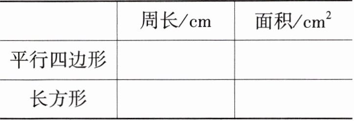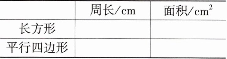 (2)如果把长方形框拉成一个平行四边形框(如图),填写下表。