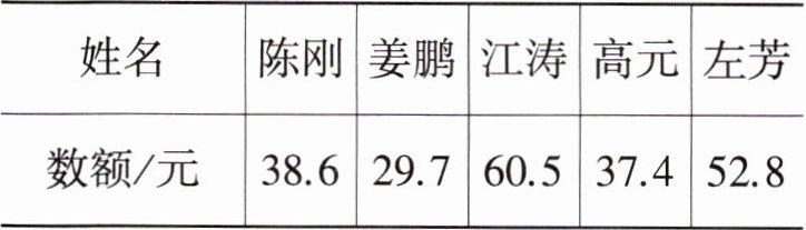 7. 下表是五位同学在一次“献爱心”活动中的捐款情况: