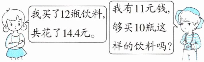 14.4÷12=1.2(元) 1.2×10=12(元) 12元>11元,不够