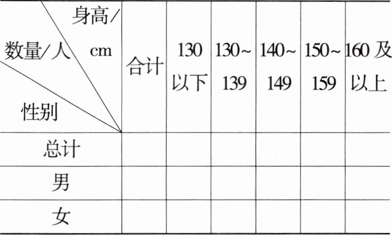 (2)身高在150~159 厘米身高段内的人数最多,身高在130~139 厘米身高段内的人数最少。在 150~159 厘米范围内。