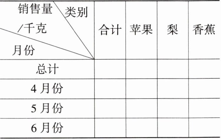 6月份:苹果260千克,梨330千克,香蕉85千克。