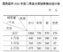 1. 惠民超市2024年第二季度水果销售情况如下: