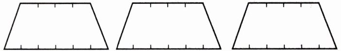 7. 在上底为 4 厘米、下底为 6 厘米的梯形中画一条线段,把梯形分成面积相等的两部分。(画出三种分法)