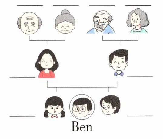 任务二:读 Ben 的家庭树,选择正确的选项填在相应横线上。