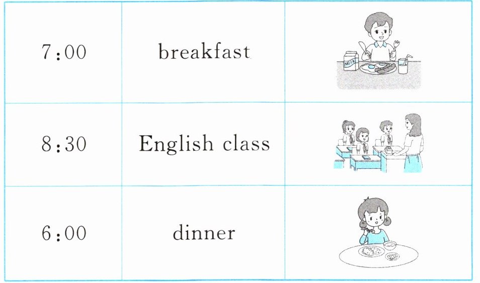 1. It's eight thirty in the morning. It's timefor English class. 2. It's six o'clock in theafternoon. It's time for dinner.