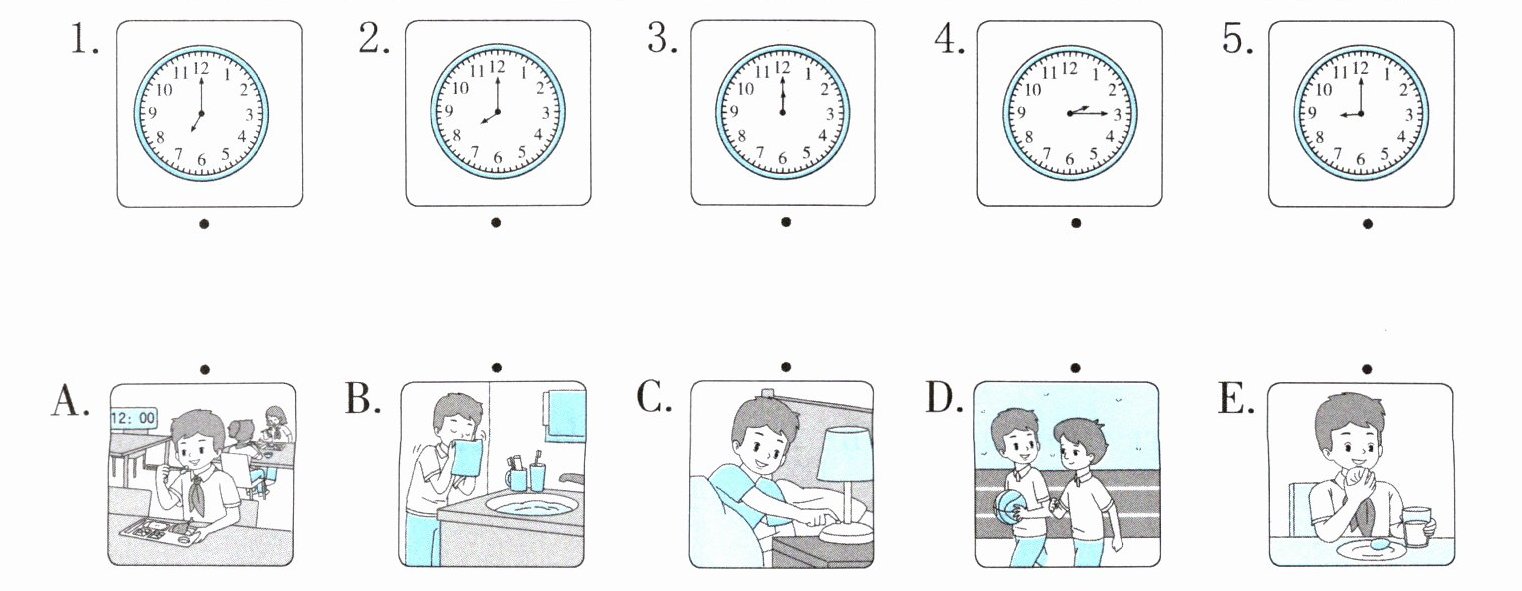 )3.It's nine o'clock. It's time for ____.A.have English class