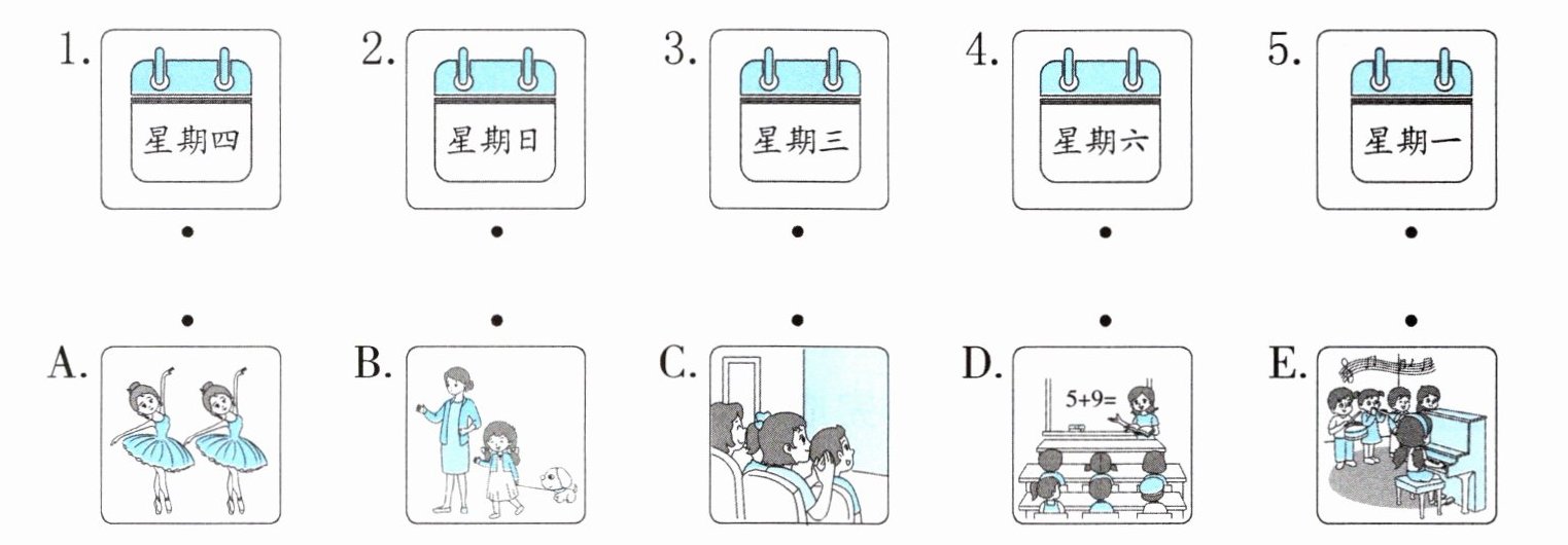 二 听录音,根据所听内容连线。(听两遍)