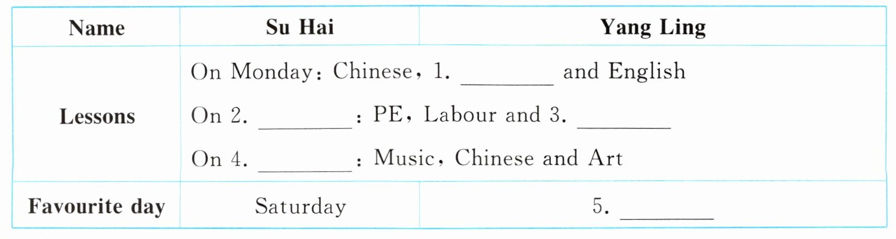 四 听录音,补全表格。(听两遍)