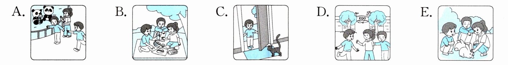 (三)星期天,李华和朋友们去动物园亲近自然。读句子,选择对应的图片。