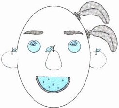 五 新素养 生活运用 Yang Ling 用水果做了一个水果人。看图,选词填空,补全短文。