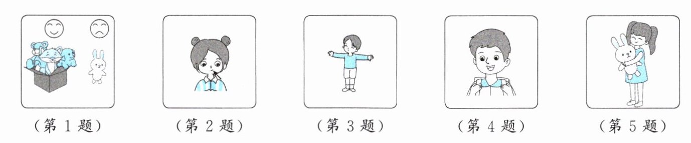 1. His arms are long. 2. We can have fun together with our friends. 3. Look at the lovely face. 4. Can your doll dance? 5. Her nose and mouth/mouth and nose are small.