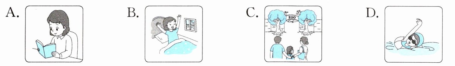 4. □ It's 8:00 p.m. It's rainy outside. I read an animal book at home. Then I go to bed at 9:00 p.m.