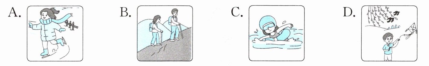 任务一:D C B A(从左向右依次) 任务二:Seasons/Four seasons(答案不唯一,言之有理即可) 任务三: Spring It is warm. I fly a kite. I plant trees. If you ask me my favourite season. I will say, I love spring.