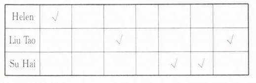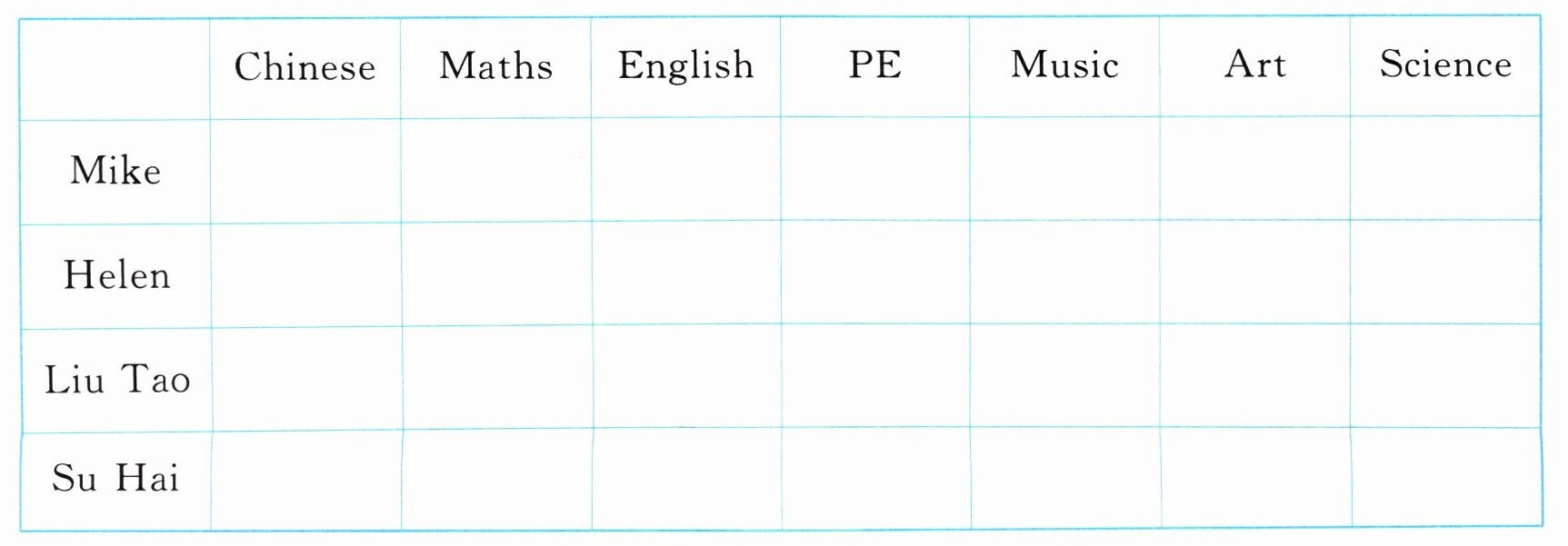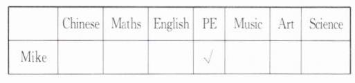 四 听录音,根据短文内容在人物对应的学科处画“√”。(听两遍)