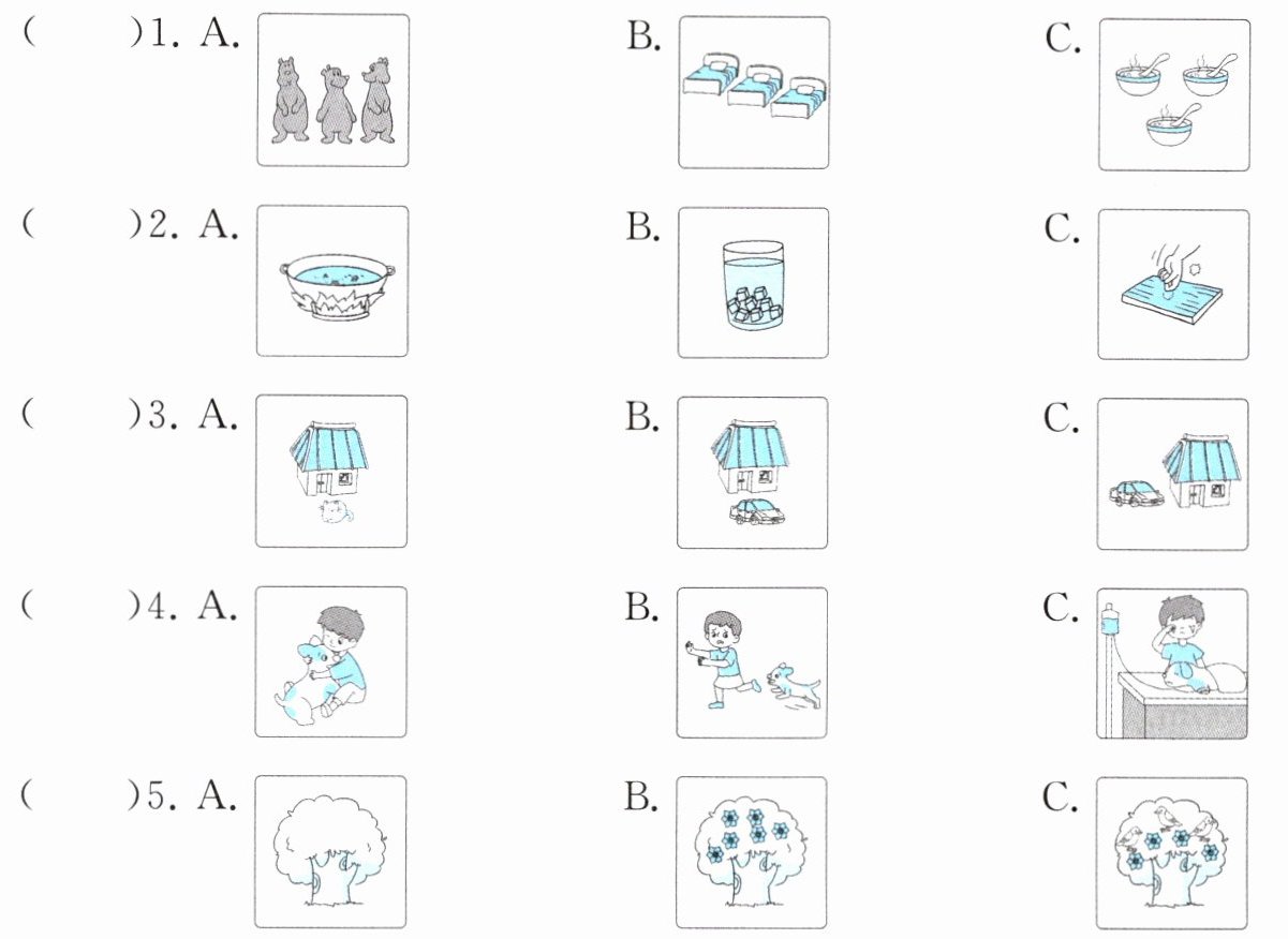 一 听录音,选择与你所听内容相符的图片。(听两遍)