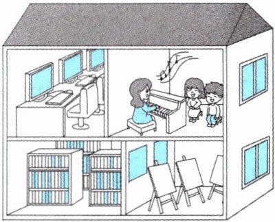 Hello, my name is Sue. I’m eleven years old. I’m in Class 1, Grade 5. Welcome to my new school. It’s big and nice. My classroom is on the second floor. There are 20 students in my classroom. There is a computer room beside my classroom. There is a music room on the second floor too. Our art room is under the music room, on the first floor. The library is between the art room and the teachers’ office(教师办公室). I like my school.