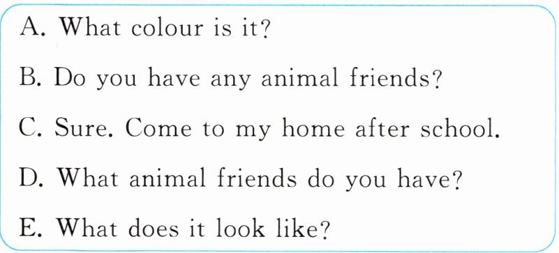 B: It has a long tail, two ears and two eyes. It is lovely! Look! It’s Kitty’s picture.