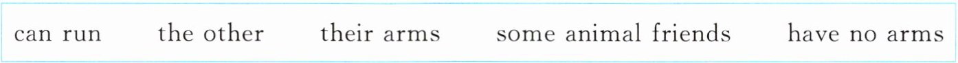 1. the other 2. has no arms 3. any animal friends 4. Their arms 5. can run