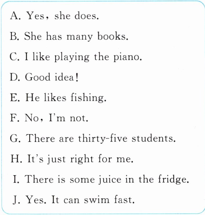 四 从方框中选择正确的答句,把句子的序号填写在括号里。