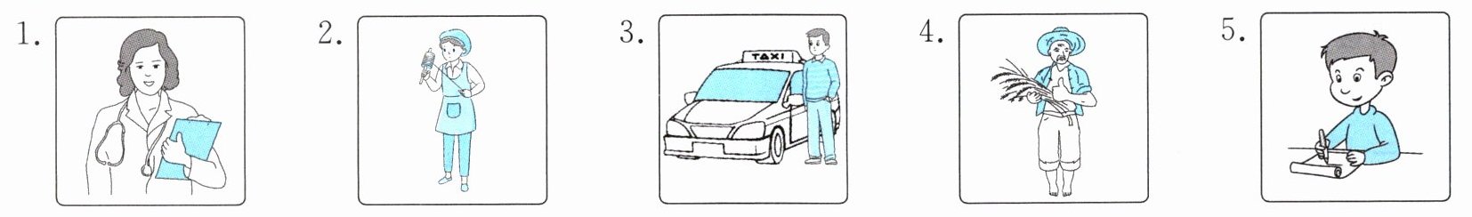 1. doctor; helps 2. worker; factory 3. driver; drives 4. farmer 5. writer; writing