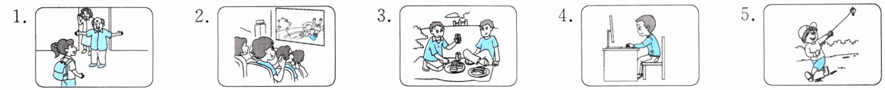 一 根据图片提示补全下列句子。