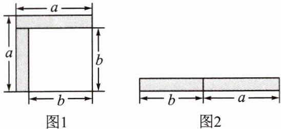15. 【核心素养·几何直观】从边长为 $ a $ 的正方形中剪掉一个边长为 $ b $ 的正方形(如图 1),然后将剩余部分拼成一个长方形(如图 2).