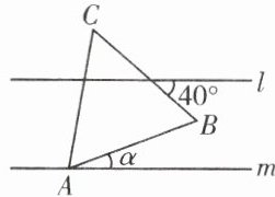 8. 如图,$l // m$,等边$\triangle ABC的顶点A在直线m$上,则$\angle \alpha =$