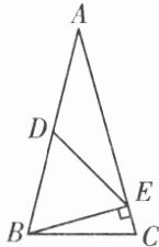 9. 如图,在$\triangle ABC$中,$\angle C = \angle ABC$,$BE \perp AC$,$\triangle BDE$是等边三角形,求$\angle C$的度数。