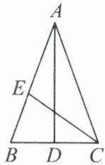7. 如图,在$\triangle ABC$中,$AD是边BC$上的中线,$CE平分\angle ACB$。若$AB = AC$,$\angle CAD = 20^{\circ}$,求$\angle AEC$的度数。