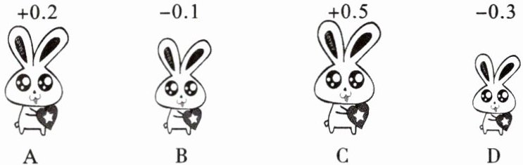 5. (原创题)如图,检查4只玩偶,其中超过标准高度的厘米数记为正数,不足标准高度的厘米数记为负数,从高度看最接近标准高度的是(
