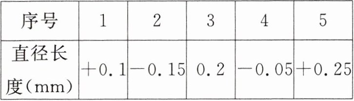 16. (核心素养·应用意识)已知零件的标准直径是$100mm$,超过标准直径长度的数量记作正数,不足标准直径长度的数量记作负数,检验员某次抽查了五件样品,检查结果如下: