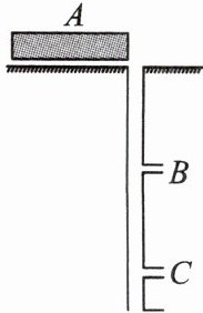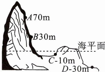 7. 某矿井的示意图所示,以地面为基准,$ A $ 点的高度是 $ 4 $ 米,$ B $,$ C $ 两点的高度分别为 $ - 15 $ 米与 $ - 30 $ 米,问 $ A $ 点比 $ B $ 点高多少?比 $ C $ 点呢?