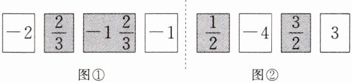 14. (情境题)(核心素养·运算能力)在数学活动课上,同学们设计了一个游戏,游戏规则如下:每人每次抽取四张卡片,如果抽到白色卡片,那么加上卡片上的数;如果抽到灰色卡片,那么减去卡片上的数,比较两位同学所抽4张卡片的计算结果,结果较小的选为数学小组长. 已知强强同学抽到如图①所示的四张卡片,冰冰同学抽到如图②所示的四张卡片,则强强、冰冰谁会成为数学小组长?