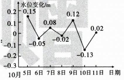 9. (核心素养·应用意识)小明去一水库进行水位变化的实地测量,他取警戒线作为0m,记录了这个水库一周内的水位变化情况(开始测量的前一天的水位达到警戒线,单位:m):