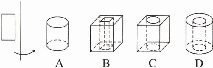 9. 观察图,把图形绕着给定的直线旋转一周后可能形成的立体图形是(