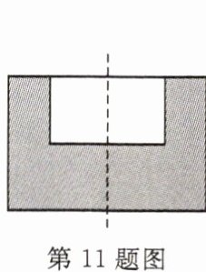 11. 图中的大长方形长$8$厘米、宽$6$厘米,小长方形长$4$厘米、宽$3$厘米,以长边中点连线(图中的虚线)为轴,将图中的阴影部分旋转一周得到的几何体的表面积为